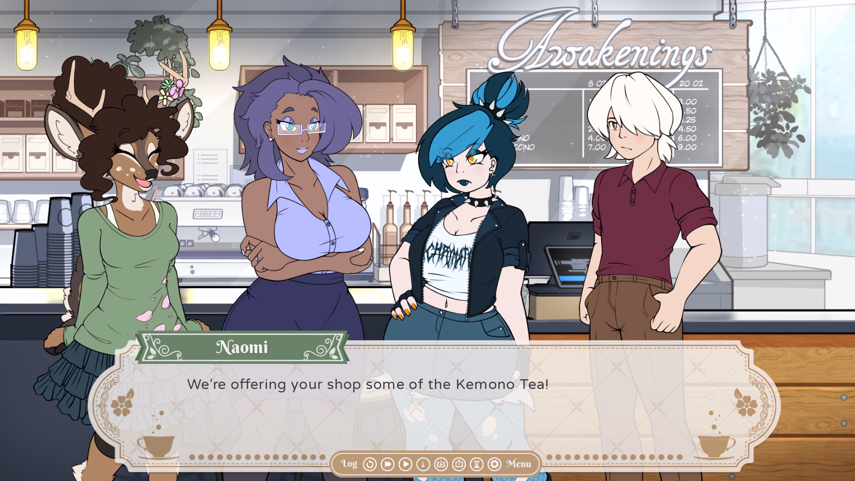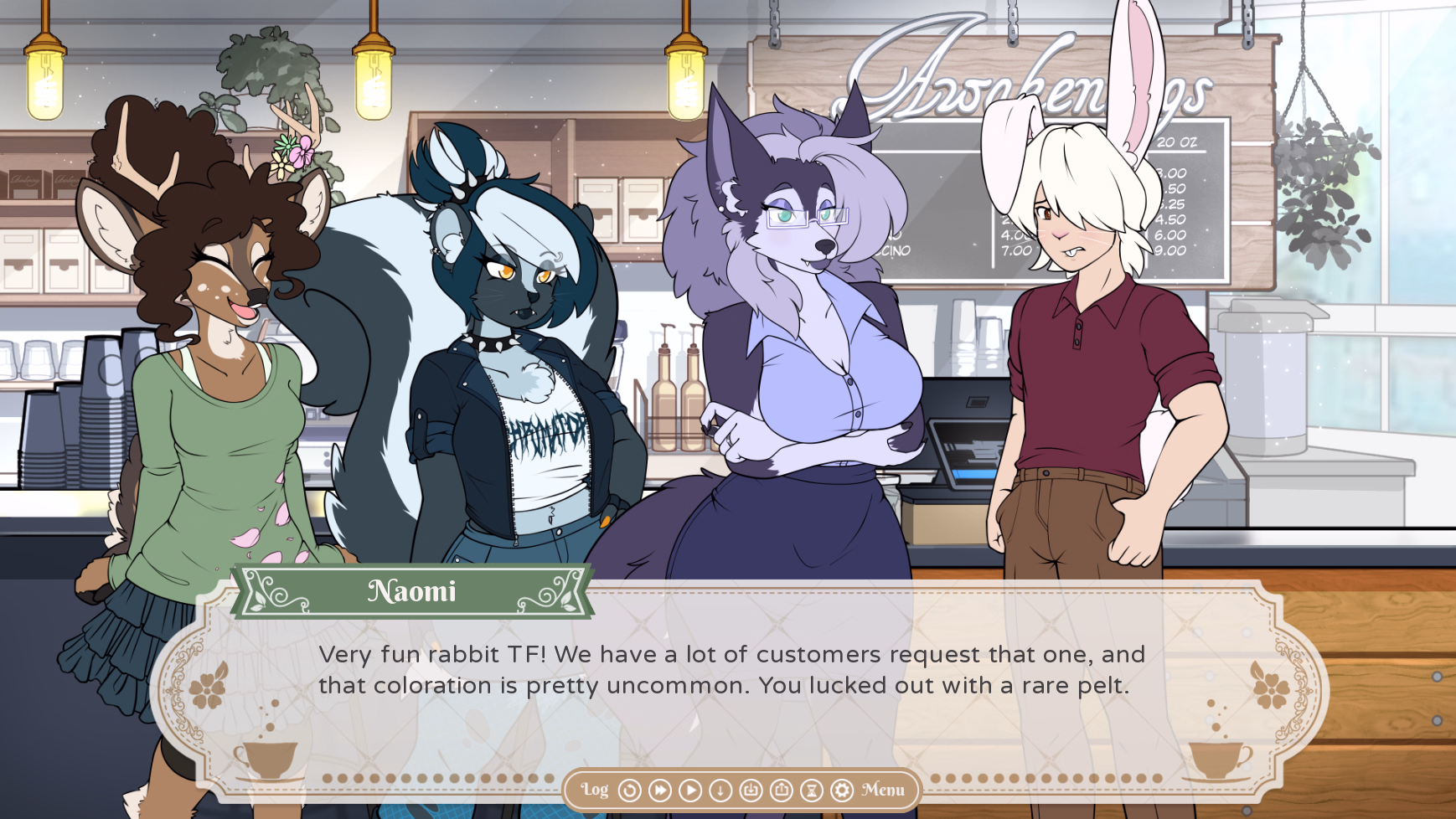 Coffee Buns is an 18+ Transformation Visual Novel set after the events of Mice Tea. It’s been two years since since the worldwide release of Kemono Tea, which turns the people who drink it into anthropomorphic animals. Society is still adjusting to the idea of real-life furries, but that doesn’t mean you can skip your day-job.Leonardo Bianco is a barista at a struggling café. His boss feels like hopping on the furry train might be just the thing to attract customers to the floundering business. Via a connection at another local business (which some returning readers might recognize), Leo and his co-workers are offered a chance to try transforming themselves. The tea works as advertised, but for Leo, there’s more changes he didn’t anticipate.