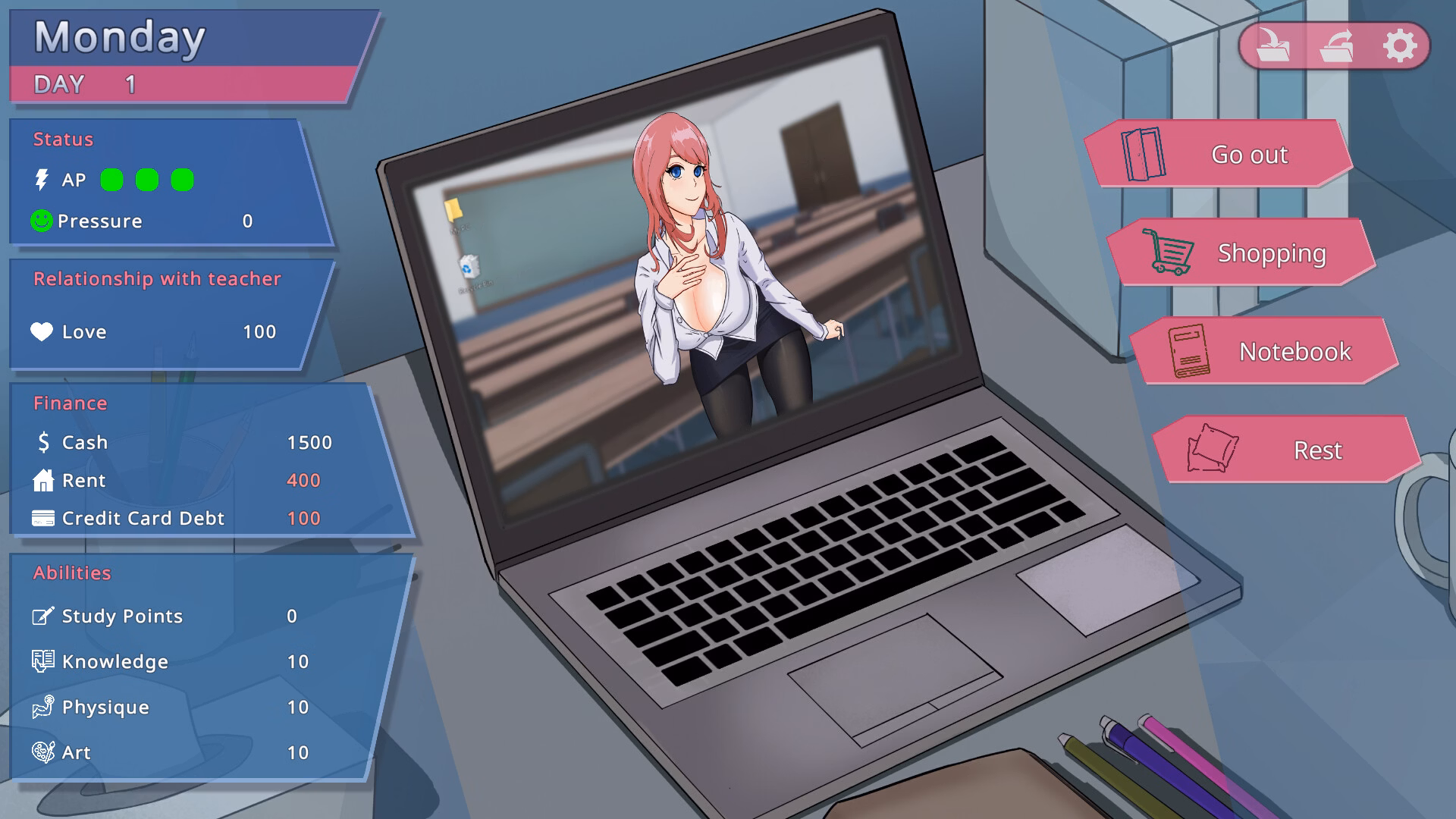 Study Miss Si’s routine and create chance encounters with her! As a student failing in all subjects and having rent and credit card bills due every week,you have to do everything you can to win over the beautiful teacher before graduation, making her leave her boyfriend and become your Spoiler As a soon-to-graduate college student, you meet the 24-year-old newly appointed teacher, Yun Si. Your encounter is purely by chance.Through your interactions with her, you become increasingly convinced that you want to be with her.However, she already has a fiancé whom she has known for many years. With this forbidden emotion in your heart, where will your journey lead?