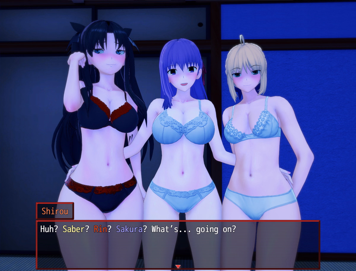 Emiya Shirou fought in the Holy grail war, and had emerged victorious in more ways than one. Not only had his enemies been defeated, but he had emerged with 3 girlfriends, Saber, Rin, and Sakura. They, along with Rider, Illya and Taiga now live at the Emiya residence, as the new school year is about to start.But their peaceful days will soon come to and end, as Matou Shinji sets his eyes on all the women living at the Emiya residence.