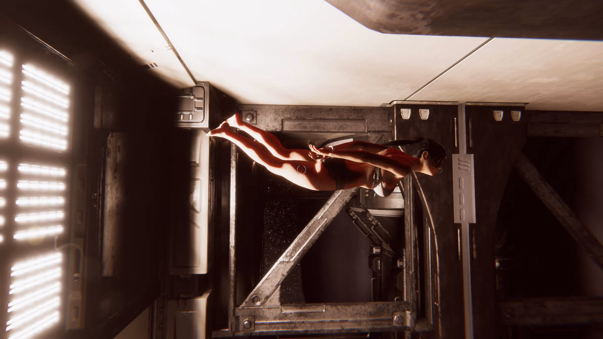 Flight of the Swallow is a story-driven bondage-themed erotic 3D adventure game that puts you in the shoes of Sandra Sandy Curnow, a flight engineer aboard the Diomeda spaceship.You control Sandy’s body and limbs using a physically simulated active ragdoll system to navigate through the ship in low- and zero-gravity environments, with regular movement being possible when in low orbit.As you explore the ship’s various sections in challenging traversal sequences and struggle out of restraints in bondage escape scenarios, you’ll get to interact and build relationships with the ship’s crew, unfolding the story through cutscenes and dialogue while trying to figure out why you woke up stripped and in handcuffs one day.The current prologue version of the game covers the first day of the story, providing several hours of playtime, with day two currently in development.