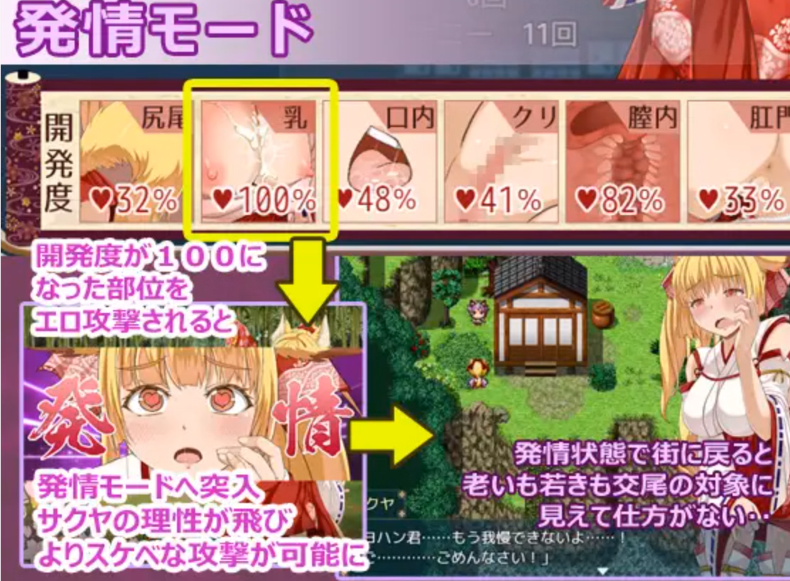 The heroine, Sakuya, is the Flower Burial Shrine Maiden, who can return tsukumogami to their original item forms by having sex with them. Spoiler She has excellent combat sense, but isn’t good at lewd techniques. She wants to avoid doing sexual things as much as possible (though she likes masturbating). While carrying out her duties as the Flower Burial Shrine Maiden, Sakuya has erotic experiences with tsukumogami, men she meets, and her beloved older sisters…