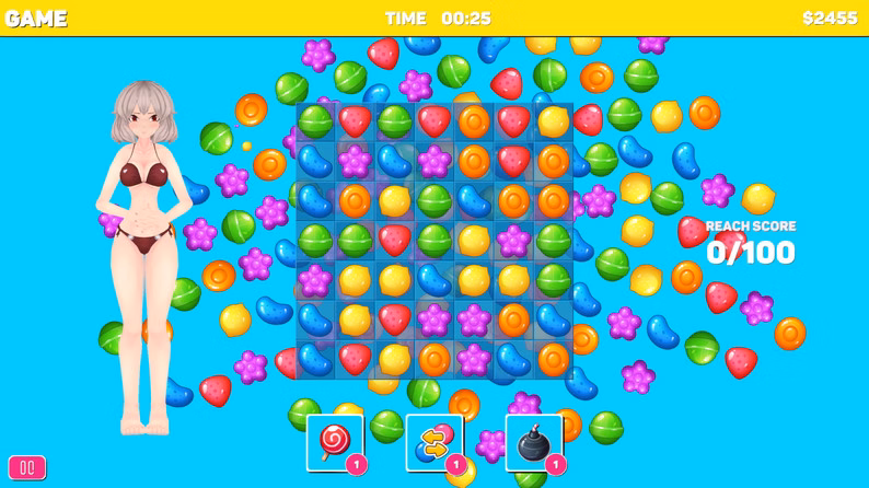 Hentai Match 3 is a unique combination of the three in a row gameplay with hot anime girls!Match candies, complete goals and unlock unlimited variations of girls. Each girl can be undressed and examined.Sell their underwear to buy upgrades and complete harder goals. Or just play with collected girls in any way you want.They are created for your pleasure!