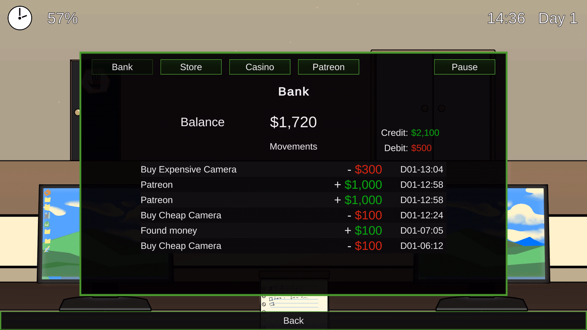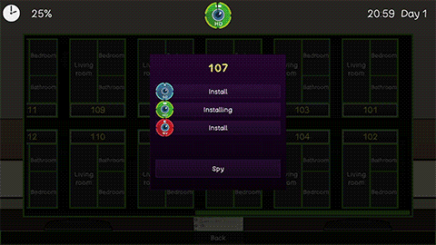 Just before being homeless, you find a new work.The job sucks but you are in a women-only college dorm.Can you learn their routines and watch their daily life?Could you get close to them?You must sit all day on a hall, recieve packages, must clean sometimes to not get fined.You can buy some cameras to put on dorms and spy on the girls residents.Or loose your money on the online casino, it’s up to you.