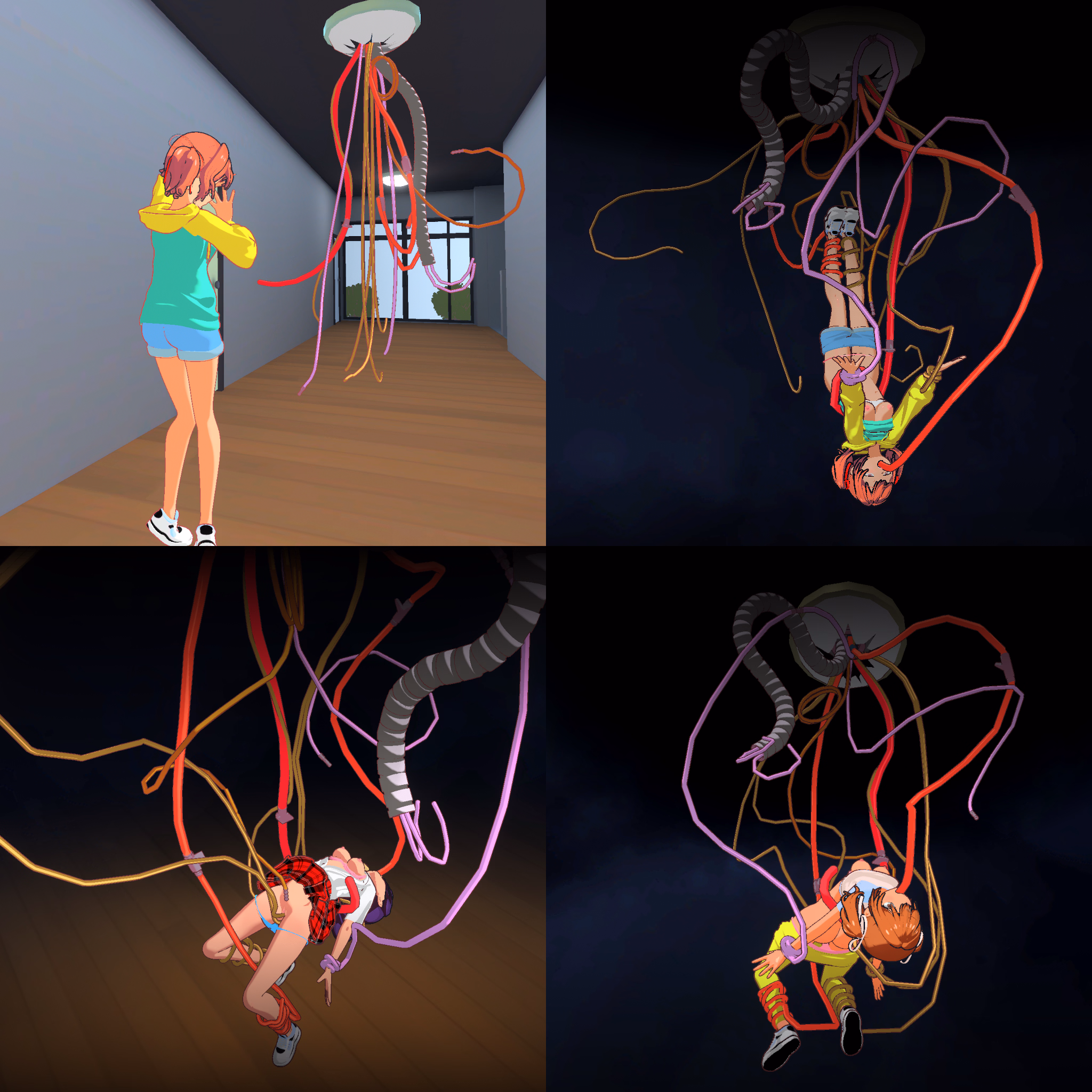 Girl runs in to unexpected troubles in an apartment building, checking different rooms.