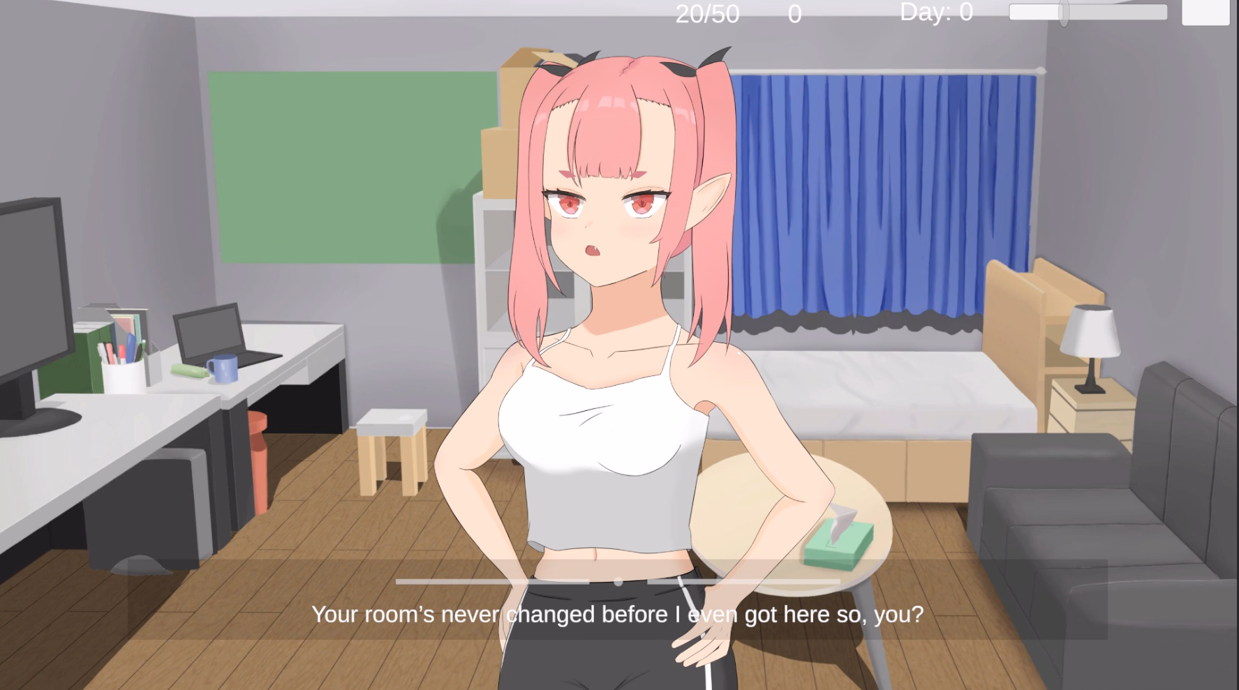 One night, as you’re going home from your part-time job, you spot a figure standing at your apartment door. Blinded by the figure’s bright glint on their forehead, you come closer to see who it is. It’s a woman you’ve never seen before. Wondering why she’s loitering on your front door, She suddenly asks you to let her stay at your place, in return for various favors . Of course, As a distinguished gentleman, you happily let her in. A decision which you’ll come to regret later