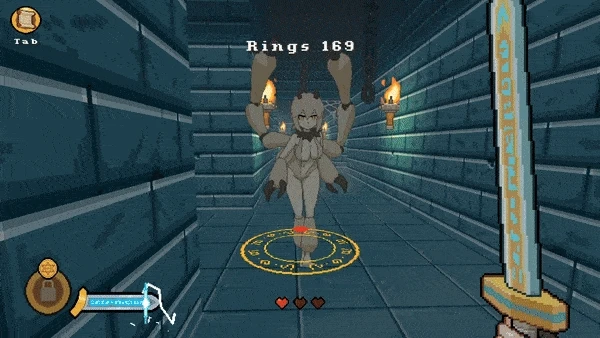 A Lewd pixel art doom-style 1st person slasher platformer game where you have to complete the mission goaland slay monster girls or be caught and fucked