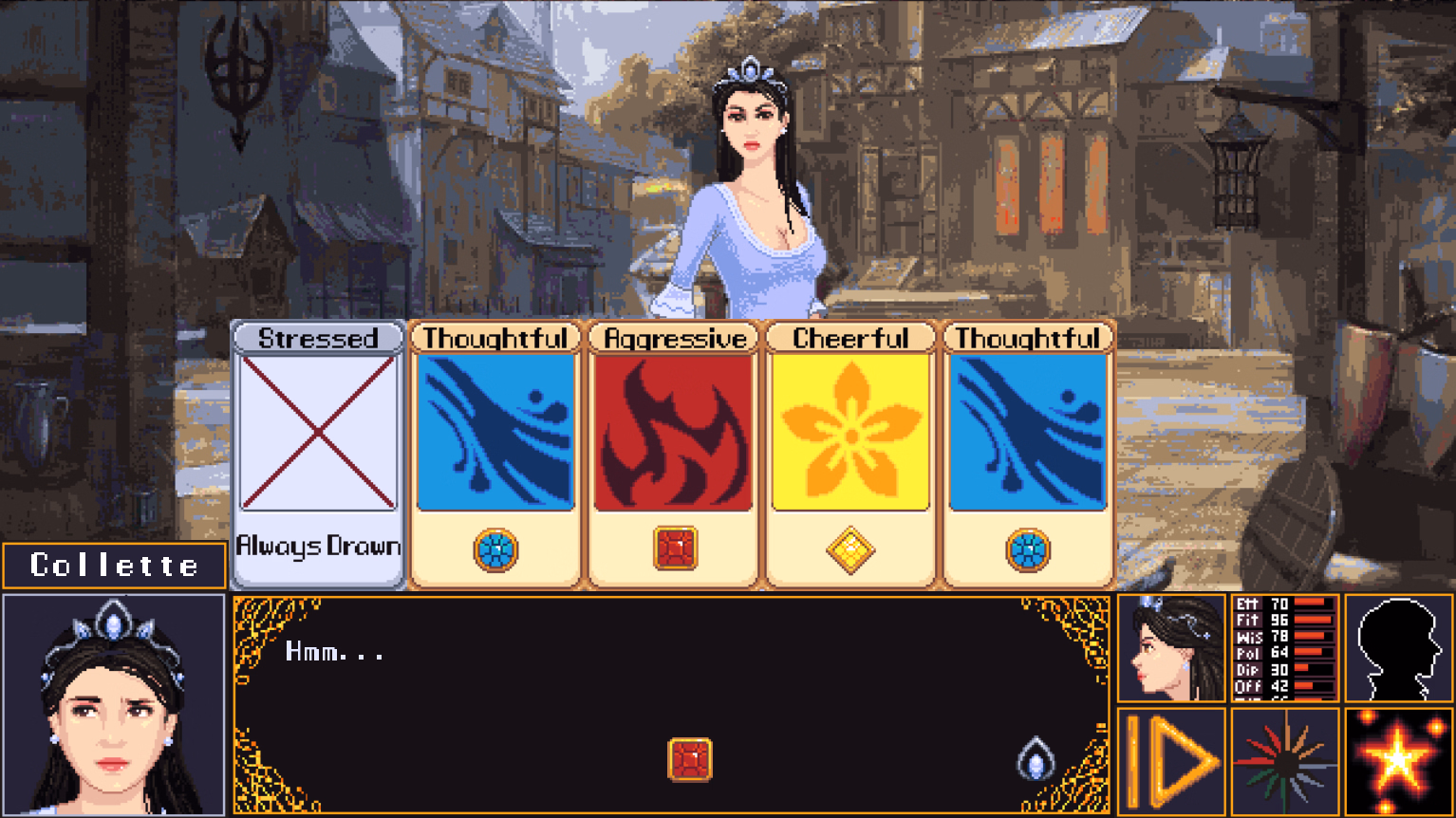 The king is dead leaving a power vacuum in the kingdom. Help guide the Princess on her quest to get herself upon the throne. You’ll have to manage her classes and personality as she tries to gain support. But be careful, dangers are lurking everywhere and the Princess has a mind of her own.Naked Ambition features a pixel art style inspired by mid 90’s PC games as well as a unique semi-randomized gameplay style. What order events happen in and what decisions the Princess makes changes every game.
