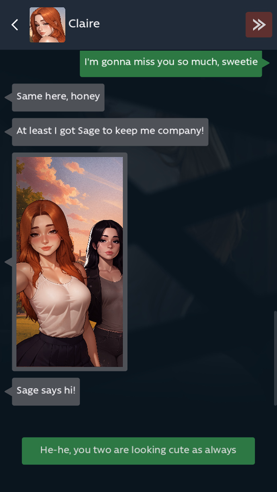 Your girlfriend has just been accepted into her dream university, while you begin your journey at another school, miles apart.Before parting, you both agreed to explore new experiences while free to meet others while staying connected through messages.As her words appear on your screen, will you embrace the thrill, push your boundaries, or struggle with the reality of distance and desire?