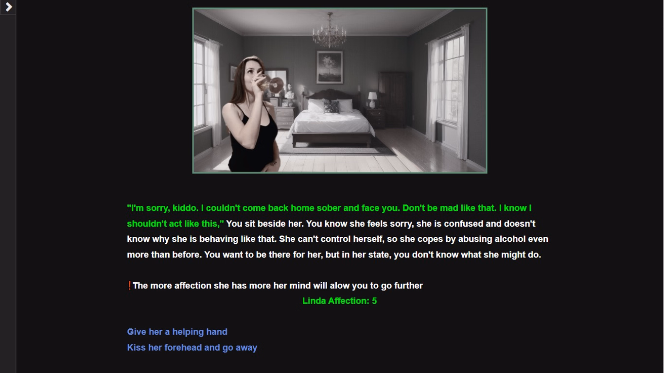 You spent your entire youth immersed in MMOs, focusing on nothing else, letting those years slip by. But life has a way of catching up. Now, you’re stuck in a loop of studying, working, and sleeping, while the void inside you grows day by day. During your summer break, for nostalgia’s sake, you decide to revisit your favorite game, only to find that after years of abandonment, it received an update that changed everything. You stumble upon a mysterious AI that offers you a chance to go back and relive the paths you didn’t take.State of the game:The game focuses on diverse and fun characters, allowing you to play and interact with the story in your own way, offering both f/m and m/m. You can choose which characters you want to interact with and skip content you don’t want to see. The game leans more towards slice-of-life moments, with options to either create wholesome experiences or corrupt those around you