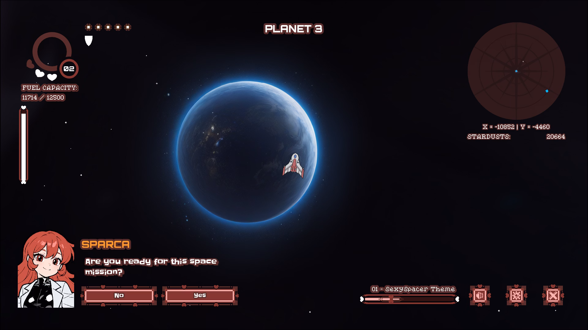 Sexyspacer is an adult/+18 game about Sparca, a female geneticist doctor who has joined forces with an alien creature on a space mission, to search and save alien DNA in a galaxy about to collapse.