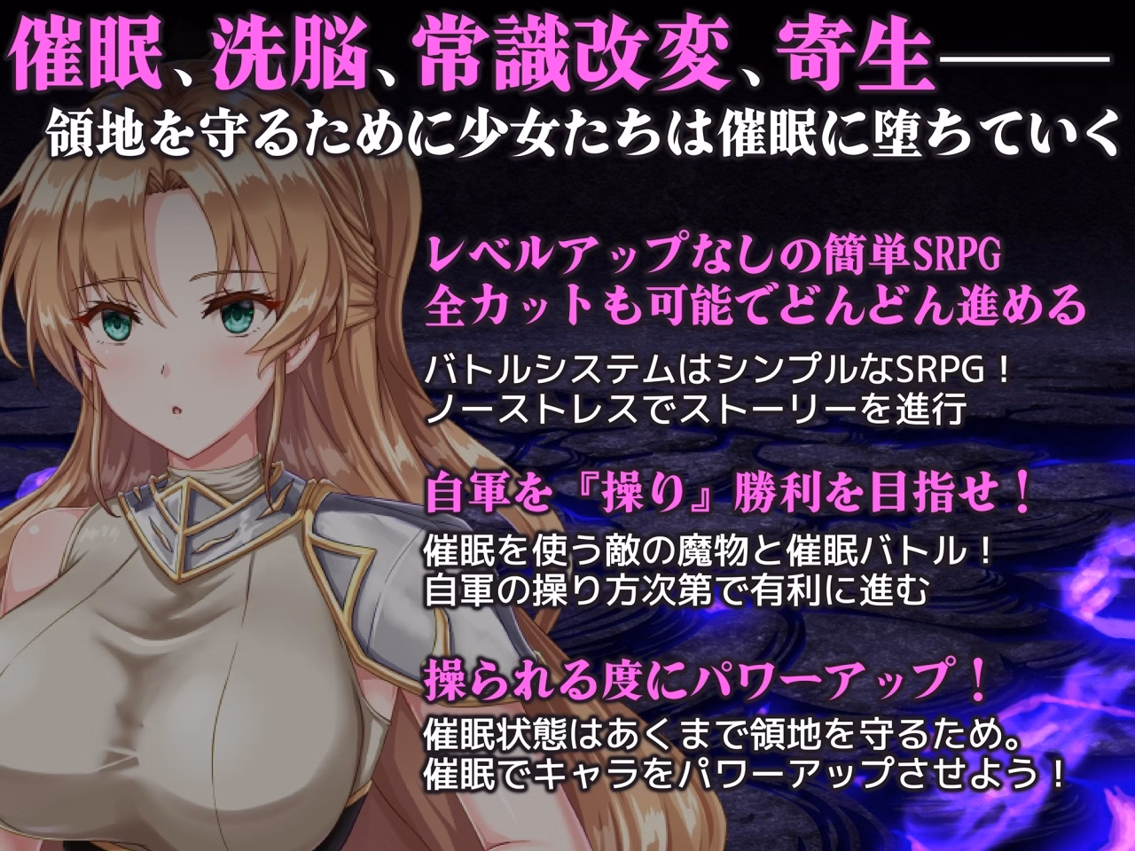 Lindis, a young girl who succeeded her deceased parents as lord of her domain. Though a novice, she governed well with the help of those around her.However, monsters possessing hypnotic abilities appeared within her lands, and the hypnotized subjects rebelled. A man claiming to be a military strategist also appeared, possessing hypnotic abilities himself. Lindis finds herself hypnotized while fighting the monsters.What fate awaits Lindis, controlled by both the strategist and the monsters?──“To save everyone, please hypnotize everyone.”