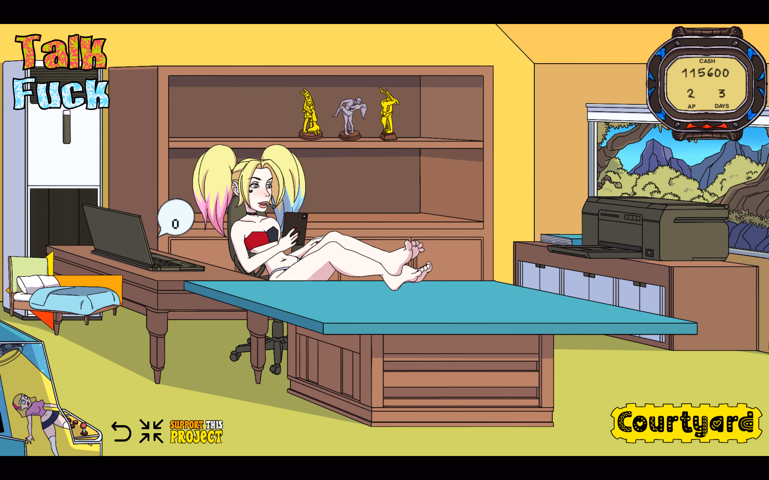 Tourist Tap is a cartoon parody game where you’re turning a hotel into your very own amateur adult entertainment studio. You will go around attracting familiar looking tourists to sign them into your ever-growing stable of talent. The game currently contains the following: