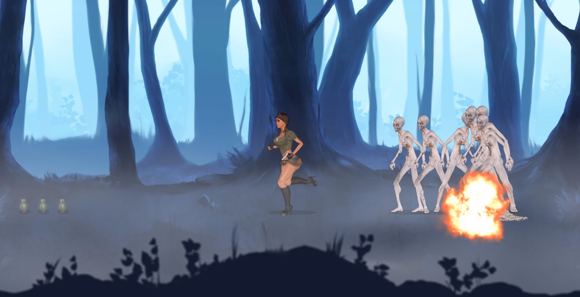 Val Karee is a 2D sidescroller action game. Gameplay is similar to Parasite in City and includes NPC interactions and puzzle solving. H content includes interactive animations, background animations, and CGIs. Currently the game is Windows-only and uses keyboard controls.STORYLINE (completely rewritten in v0.4.51): Val Karee and her girlfriends were on a camping trip when they were attacked in the middle of the night. Her friends were kidnapped but Val got away, and now she’s back and fully armed and ready to be a hero. She can do it all — kick enemies down, shoot them in the face, slide past their attacks, and blow them the fuck up. She’s tough. She’s buff. And she’s heading into the haunted forest to show them who’s boss. Spoiler But Val’s about to get fucked.This is more than just a zombie tale. The forest has a history, as Val quickly learns when she meets the Lieutenant, and he and his soldiers will expose her to a world of mystery, intrigue, and malevolence. Every turn will bring more questions than answers — What happened in this forest? Where did all these relics come from? Who are the converteds? What’s the Lieutenant’s true agenda? And, most importantly, what happened to her friends?Join Val as she battles the evil hordes while trying to solve the mysteries of the phantom wilderness. Fight fast, fight hard, and fight smart, and you may just survive. Or just go ahead and get killed if you prefer — that’s kinda fun, too.