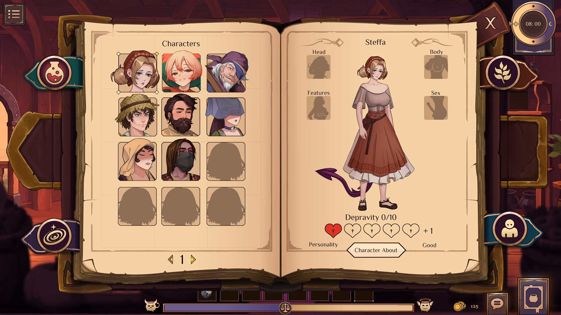 Step into the role of a young witch, Rena, who finds herself in an extraordinary world. There are no gods or religions here, but plenty of powerful entities and mysterious cults. The skies are filled with airships, the roads are raced by steam-powered carriages, but you can easily encounter wizards, demons, fascinating races, and visitors from other worlds.Visitors will come to you for advice or to buy potions to solve their problems. But will you choose to help them? After all, you can deceive or persuade your guests, steer them toward the light or the dark (depending on what benefits you the most), force them into servitude, or win them over with kindness. No one will judge you—this is your story! And not every healing potion will serve a noble purpose, nor will a tangle of tentacles always turn your guest into a true monster.Seduce or leave them yearning, make influential friends and get rid of enemies, help heroes or villains! The game remembers all your actions, and sooner or later, they will impact the narrative branches. Power and glory, fear and bravery, honor and deceit—these are mere words to someone who has donned a witch’s hat and stood by the cauldron. Your craft unlocks countless possibilities; you just have to choose the path Rena will take.